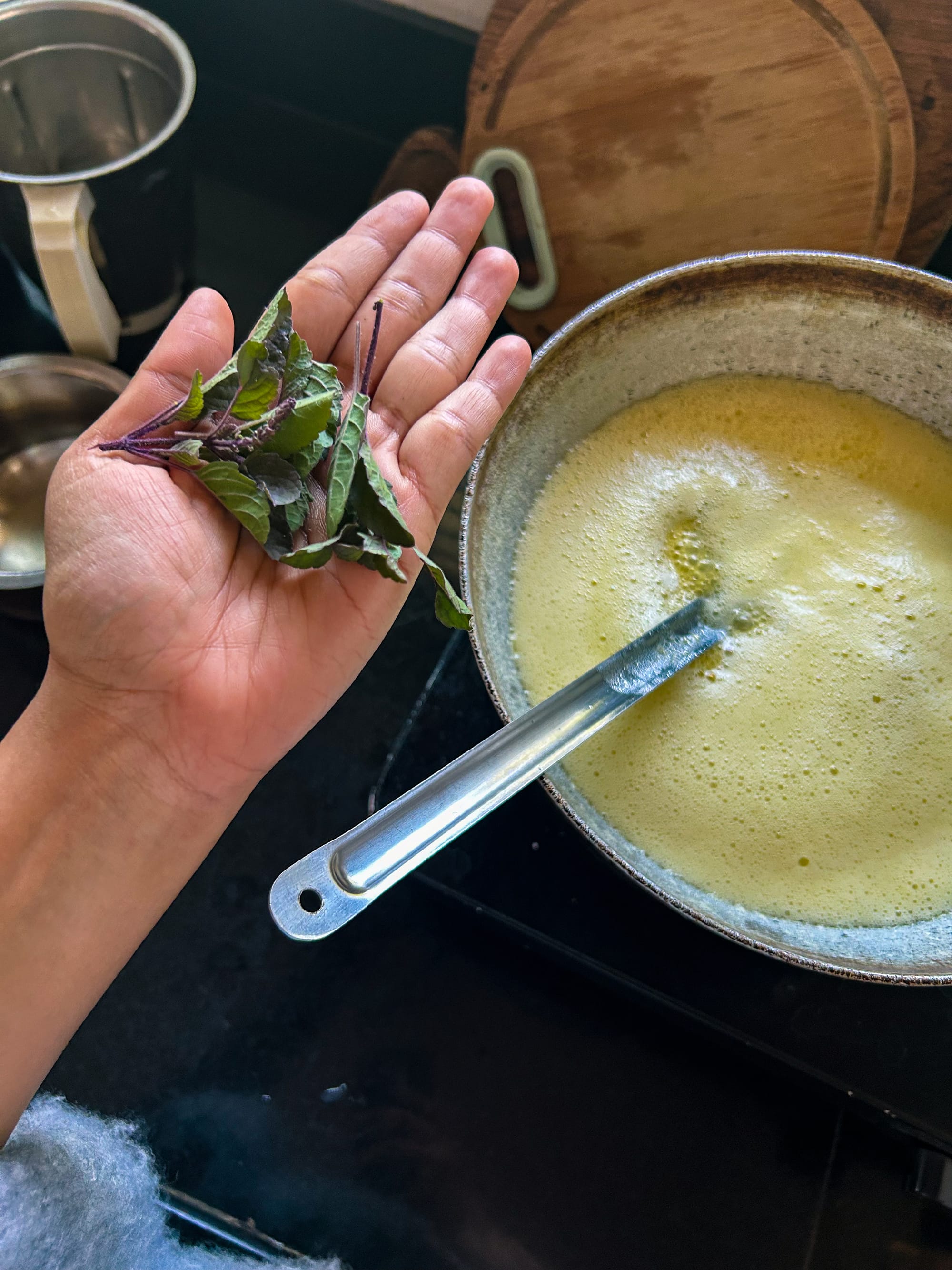 Ghee has been an ancient ingredient in home-cooking and also the traditional wellness science of Ayurveda. In a sense it is Vedic in its origins and is part of the Panchamruta offering used in yagnas and homams, and thereby becomes almost a divine food.