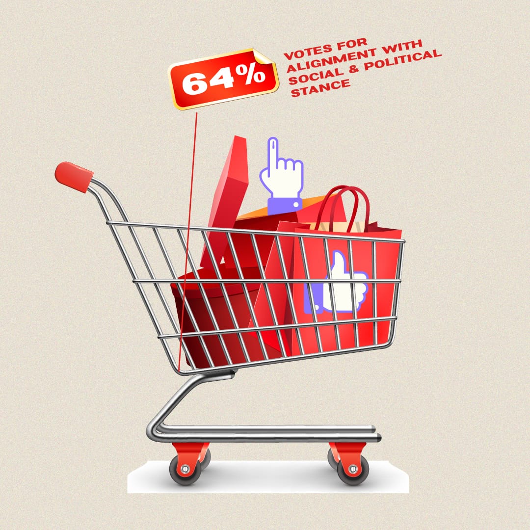 Another study by Edelman revealed that 64% of worldwide consumers based their buying decisions on a brand's social or political stance.